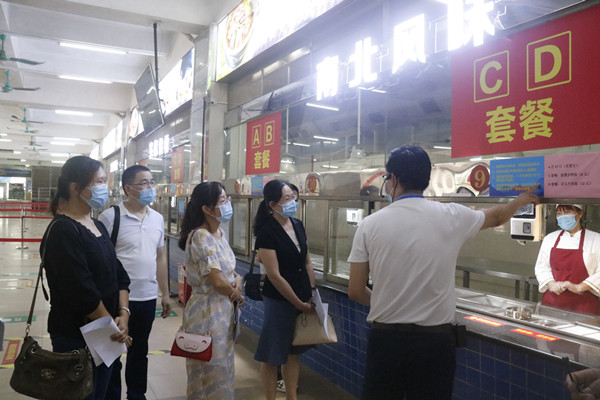 验收小组了解学生饭堂准备情况(文俪婷摄)