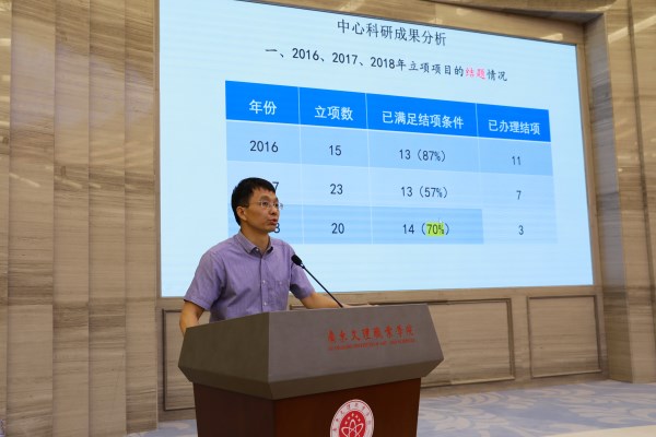 第三议程由中心副主任许抄军教授对中心科研情况进行总结。从南海丝绸之路协同创新中心成立开始,到今年中心成功升级为广东省哲学社会科学研究基地——广东沿海经济带发展研究中心,立项数量和结项比率逐年递增,纵横向项目立项等成果明显提高,尤其是高水平论文呈爆炸式增长。参与中心活动的人数已经突破120人,中心活动以商学院为主体,同时包括了教科院、信息学院、法政学院、外语学院、文传学院、马克思主义学院、音体美等十几个学院和学校科研处、教务处等主要行政部门,实现了真正的跨学科、学院交流合作。