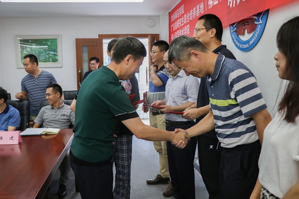 魏兴琥宣读聘任导师名单并颁发导师聘书,并简要介绍了基地的工作经验。他指出,广东省研究生联合基地(佛山)中心的建设发展成果得益于政府、学校和佛山制造业企业的支持与紧密合作,当地企业欢迎导师们把科研水平和技术带入基地并转化为科研成果。他表示,目前基地的发展需要挖掘更多粤西优秀导师的资源拓展规模,本次合作为筹建湛江基地奠定了良好的基础。佛山科学技术学院将继续支持兄弟院校岭南师范学院的发展,希望岭南师范学院申硕成功,在未来进一步交流培养研究生经验与成果。