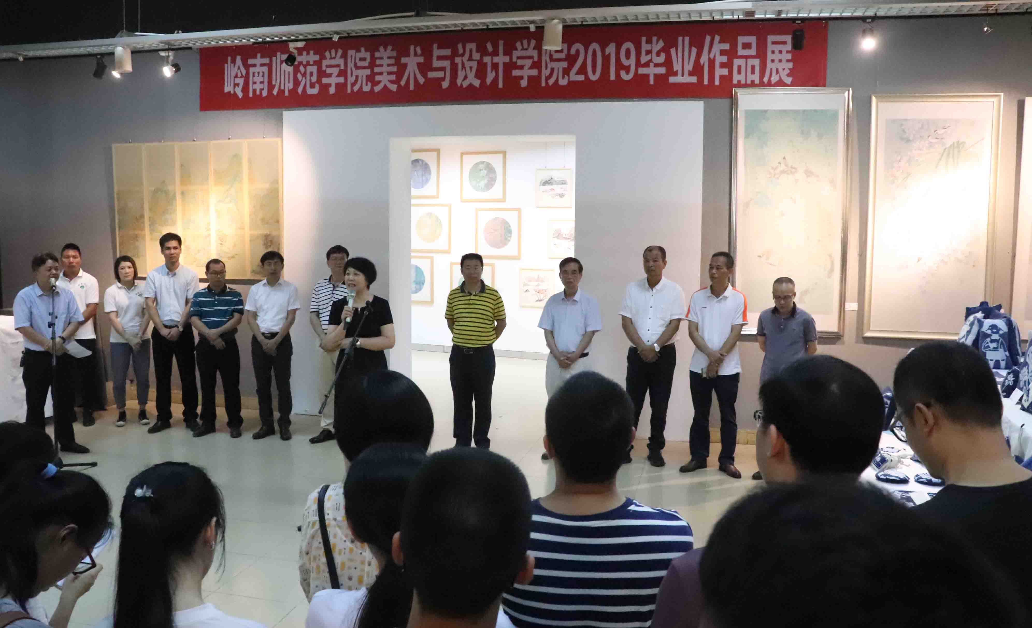 “此次毕业展规模较大,影响非常广。”兰艳泽为开幕式致辞中对2019届美术专业毕业作品展成功举办、毕业生取得优秀成果表示祝贺。兰艳泽表示,正是这些优秀的毕业作品共同见证了师生四年的共同成长,让人感受到一种作为教师强烈的责任感、光荣感和使命感;毕业在即,希望同学能时刻记住这种师生同修的场景,传承和发扬这种教师的使命和荣光。兰艳泽指出,岭南师范学院作为扎根于湛江的高校,“在湛、言湛、爱湛”是学校的办学宗旨,感谢湛江市教育局及社会各界对学校办学的支持和帮助。兰艳泽希望,毕业生能够始终牢记本次展览主题“以终为始”,不忘初心,以终点为起点,在新的起点上走得更远,飞得更高,在各自的工作岗位或学习领域“百尺竿头,更进一步”,画好人生由始至终、由终启始的大圆圈,收获一个圆满的人生!