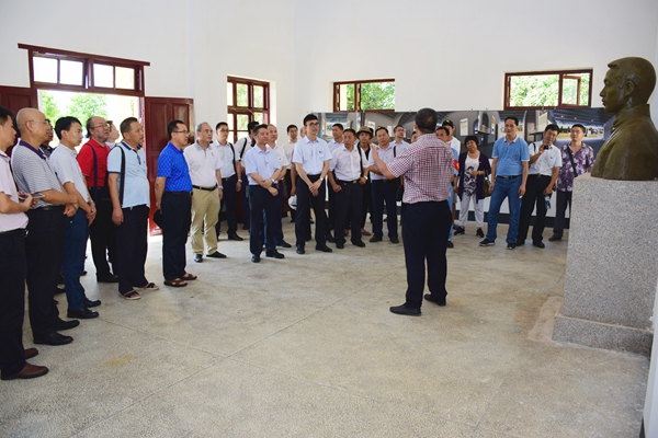 岭师新闻中心讯:7月3日下午,学校领导、校党委委员、党委理论学习中心组全体成员60多人赴湛江市遂溪乐民镇墩文村革命烈士黄学增同志故居,开展以“不忘初心、牢记使命”为主题的实践课堂活动,并揭牌成立“岭南师范学院马克思主义乡村教育研究基地”。