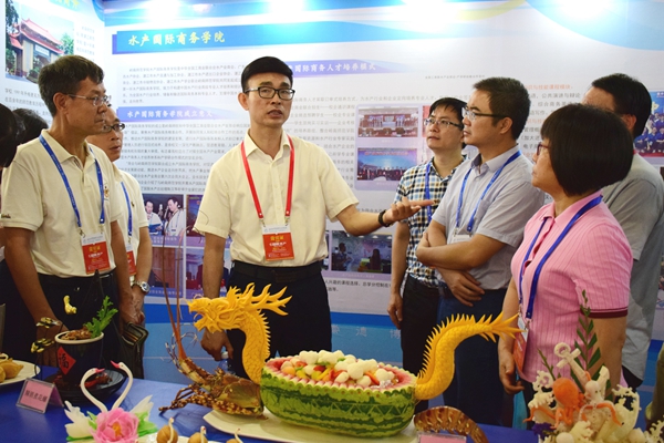 我校党委宣传部部长谢应明,教务处处长、水产国际商务学院院长刘惠卿,外国语学院党委书记冯彩莲,外国语学院院长、水产国际商务学院执行院长孙卫东,生命科学与技术学院党委副书记郑侯锦,校地合作办主任欧海清等,以及相关专业的师生共同参加了本次展览会。