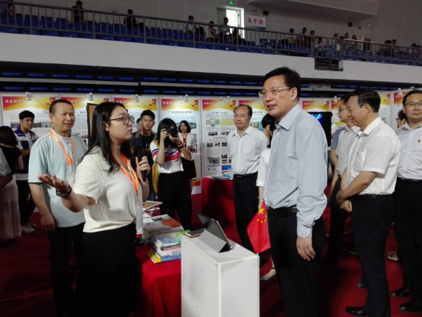 5月29日,副省长黄宁生出席成果展开展仪式后,来到我校展位,听取了我校党委学生工作部副部长邓倩文对成果的讲解,翻阅了我校主编的大学生心理健康教育教材,肯定了我校心理育人成果,高兴地说:“岭南师范学院,我去过!”,感谢我校对粤西大学生心理健康教育事业的付出与贡献。省教育厅厅长景李虎、团省委副书记武一婷等领导为我校辐射有力、扎实有效的心理育人成果点赞。