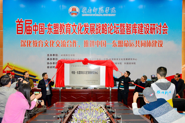 岭师新闻中心讯:“深化教育文化交流合作,建设中国-东盟命运共同体。”12月22日上午,首届中国-东盟教育文化发展战略论坛暨智库建设研讨会在我校国际会议厅开幕,广东省决策咨询研究基地、中国-东盟教育文化发展研究中心揭牌成立。来自各地的专家学者齐聚一堂,围绕“中国-东盟战略与政策”这一主题进行研讨,共商中国-东盟教育文化建设与发展大计。我校副校长、中国—东盟教育文化研究中心主任黄崴教授为大会致开幕辞。湛江市教育局副局长冯燕锋、湛江市委政策研究室副主任张鼎智出席会议。科研处处长金义富主持开幕式。