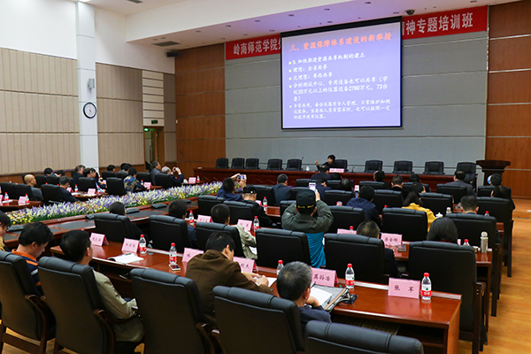 岭师新闻中心讯:11月21日下午,在我校处级干部学习贯彻党的十九大精神专题培训班上,兰艳泽副校长以《深入践行党的十九大精神,狠抓资源保障建设》为主题为学员作专题报告,从建设资源保障角度为大家提供思路与示范。