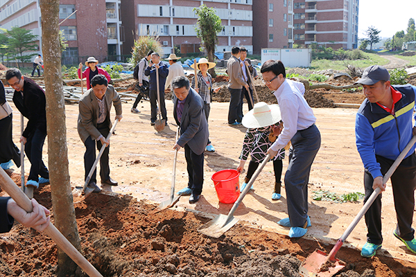 上午时分,风和日丽。在志道苑旁边的植树现场,罗海鸥等校领导和干部教师、后勤员工一道,挥锹铲土,培土浇水。参加植树的人员几人一组,合力扶直树苗,齐心培土踩实,大家干劲十足,忙碌有序,经过近两个小时的紧张劳动,大家共同种下了火焰木、榕树60余棵,近日还将种植一批桂花树、小叶榄仁树,为这个“全国绿化先进单位”的绿色校园再添生机绿意。