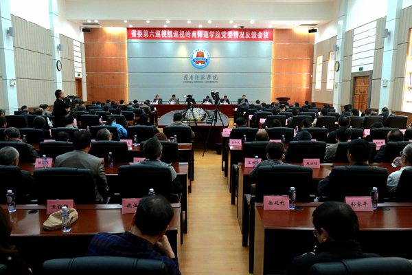 省委第六巡视组副组长刘爱平、李新春,省委巡视办、省委第六巡视组、省委教育工委(省教育厅)有关同志,岭南师范学院党委领导班子成员出席会议;学校中层正职以上干部、正高职称以上教职工、纪检监察和组织人事部门等有关同志列席会议。