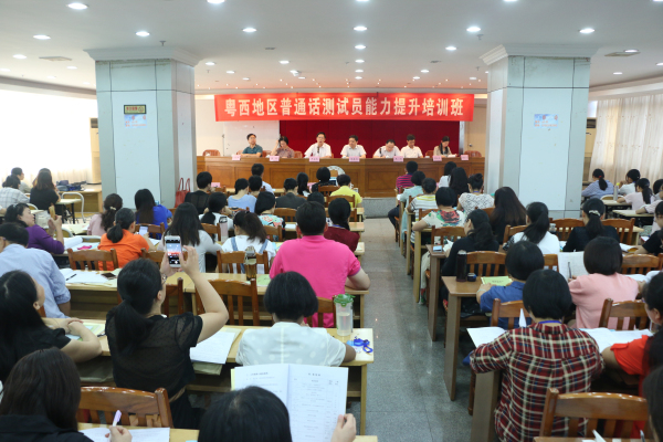 教育部语用司司长姚喜双出席开班仪式并围绕《国家语言文字事业“十三五”发展规划》为学员讲授第一课,广东省教育厅副厅长王创在开班仪式上致辞。我校党委罗海鸥书记、邵乐喜副校长等领导以及来自粤西不同地区的测试员老师参加开班仪式。开班仪式由省教育厅语委办调研员张毅主持。
