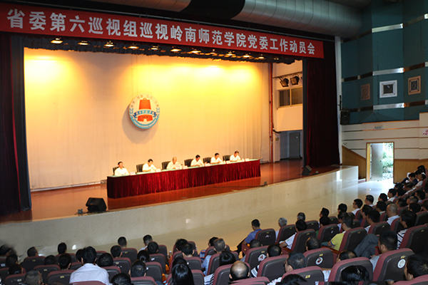 省委第六巡视组副组长刘爱平、李新春及全组成员,省委巡视办相关同志,岭南师范学院领导班子成员,岭南师范学院中层副职、副高职称以上教职员工,2013年以来退休的学校领导班子成员,省党代表、人大代表、政协委员,党员代表等参加了会议。