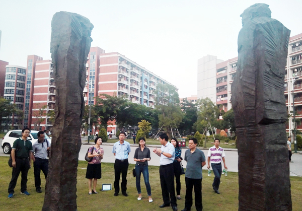 “尔来问道无余说, 云在青天水在瓶。”来到著名雕塑家吴为山为我校创作的青铜雕塑《问道》旁,罗海鸥动情地为客人朗诵起自己为这座雕塑撰写的《题记》。大师、大树、大楼,此情此景,姚双喜等人盛赞校园稳步换景,一步一景,文景交融,处处体现了“人在哪里,教育在那里;景在哪里,教育在那里”的育人理念。