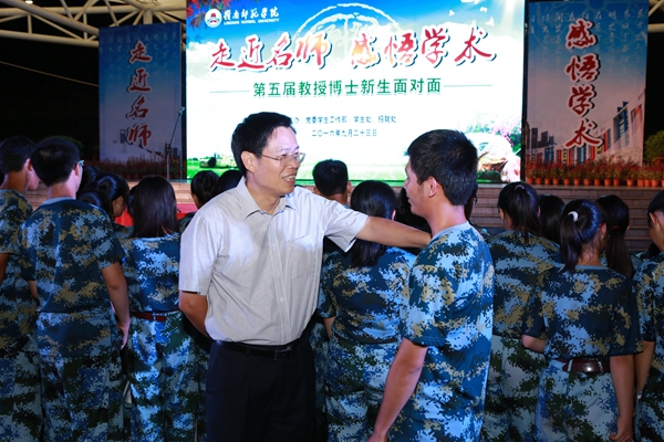 9月23日晚,我校第五届教授博士新生面对面活动在雷阳广场举行。学校党委罗海鸥书记亲临现场,与来自全校14个二级学院、马克思主义学院和职能部门共计176名教授和博士以及2016级新生齐交流、共探讨。学校党委彭权群副书记、邵乐喜副校长参加了活动。活动由学生处(招就处)李粤处长主持。