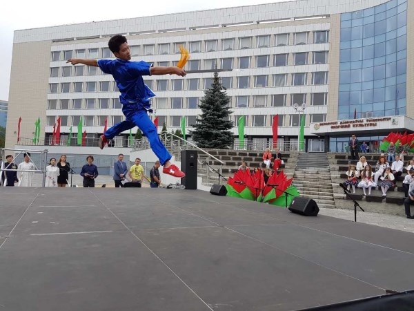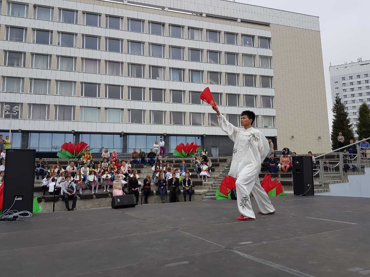 我校选派的中国留学生为大家带来了中国太极,咏春拳,集体南拳,剑术,长拳等一系列中华武术表演。精彩的表演受到了现场观众的热烈欢迎。来自白俄罗斯当地武术学校的小朋友们,也为观众们带来了中国传统武术的表演。