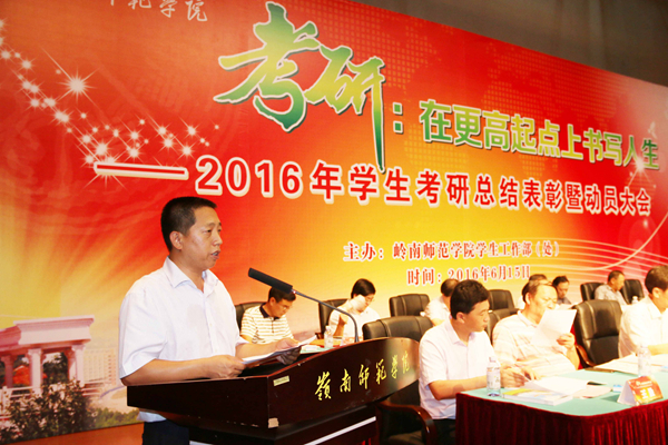 教务处程可拉处长、校内各二级学院院长、党委副书记、全体辅导员,以及受表彰的考研学生代表和2013级部分有志于考研的学生代表参加了表彰会。