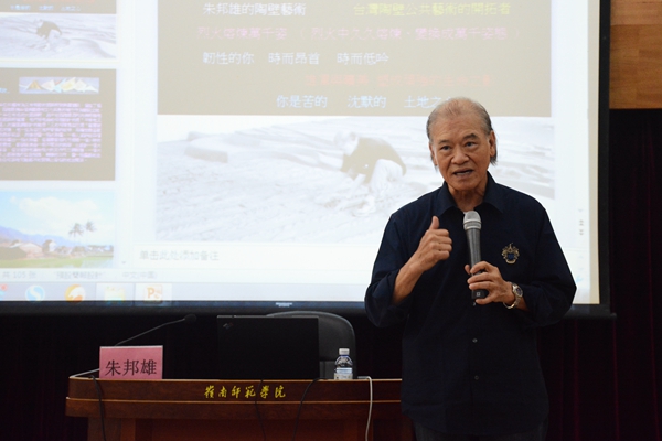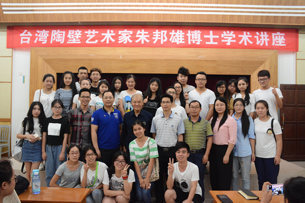 岭师新闻中心讯:“再次来到岭南师院,就好像回到娘家一样,学校这几年的变化很大,非常了不起!”5月24日,台湾著名陶壁艺术大师朱邦雄博士莅校交流讲学,盛赞我校校园文化环境的变化,并为我校师生带来了“艺术、设计与工学的聚量”的专题报告。