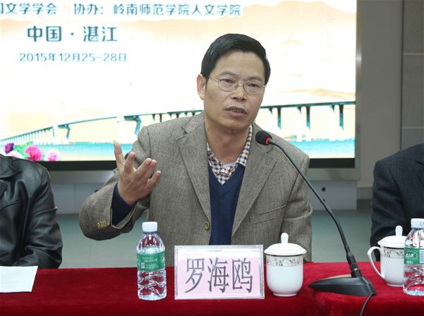 罗海鸥结合自己学习贯彻习近平总书记文艺工作座谈会讲话精神的体会,提倡人文学者要研究前沿,书写时代,服务本土,服务人民。认为文学艺术研究者应德艺双馨,勇做铸造灵魂、培育精神的时代先锋。罗校长介绍了学校的办学理念、办学特色以及近年来学校改革发展的系列成就。岭南师范学院高度重视人文学科的发展与人文教育,通过“身教、言教、境教、制教”等四个方面对学生进行润物细无声的人文教化。