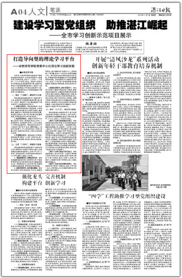 党委中心组理论学习经验曾发表在教育部主管、国家行政学院主办的《高教领导参考》上,党委中心组先后11次获得湛江市年度先进党委中心组,为建设特色鲜明的高水平师范院校提供了精神动力和思想保证。