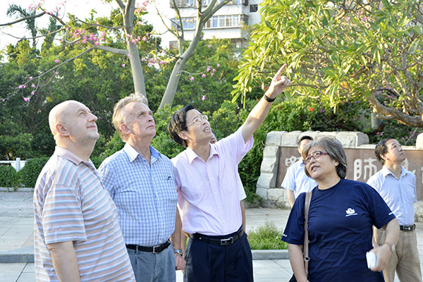 在我校罗海鸥校长、黄崴副校长和国际交流与合作处邓逢光处长等陪同下,来访团一行参观了我校校园、校史馆和图书馆,来宾们对我校悠久的办学历史和精致的校园文化建设给予了高度的赞赏。