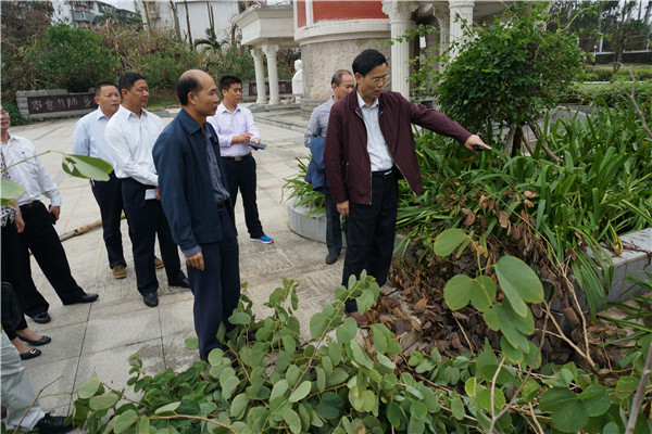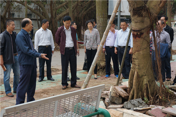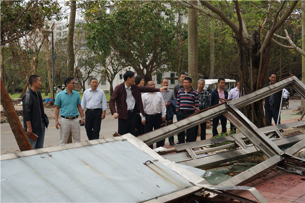 罗海鸥一行先后察看了书院广场、百年师范纪念广场、雷阳广场、图书馆、体育馆、学生公寓等地。每到一处,罗海鸥都仔细询问当时的受灾情况,相关部门负责人都作了简要介绍并详细汇报了重建的计划以及目前工作进展。听了各部门的汇报后,罗海鸥痛心于优美校园的破坏,也放心于没有人员受伤。