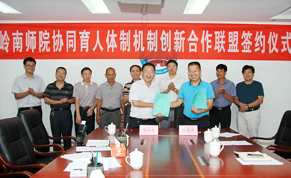 岭师新闻中心讯:9月28日下午,我校在二号会议室举行协同育人体制机制创新合作联盟签约仪式,湛江市科学技术协会肖斌主席在科协班子成员的陪同下,率领遂溪县遂城桌面园艺种植场、湛江市增盛园林工程有限公司、廉江市盆景协会等三家联盟单位来校参加合作交流。学校党委梁英书记、党办黄达海主任以及生科院领导班子、教师代表出席了签约仪式。签约仪式由梁英书记主持。
