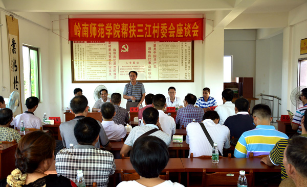 7月23日,我校党委梁英书记、彭权群副书记率领党办、组织部、后勤党总支、商学院等单位有关人员一行20余人,赴我校扶贫帮扶单位吴川市振文镇三江村开展调研工作。一行人与吴川市副市长张亚福、农业局局长陈伟雄和市扶贫办公室主任林伟、振文镇镇长翟亚辉等领导参加了座谈会,会后前往我校帮扶项目三江小学、三江幼儿园参观。