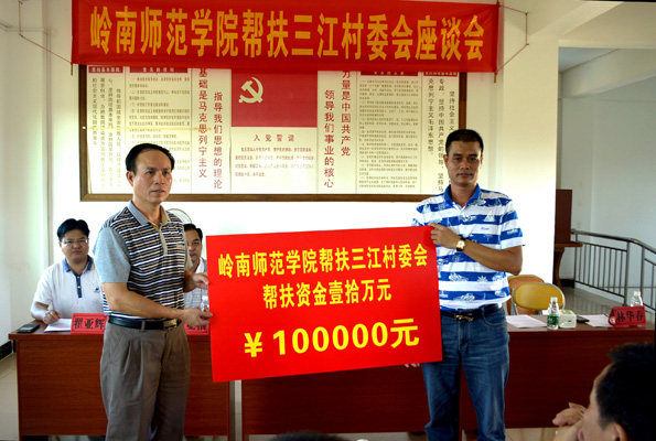 座谈会上,梁英向三江村委会捐赠了10万元扶贫项目资金。彭权群副书记、商学院党委、后勤党总支的代表分别给贫困户送上了帮扶项目资金,并鼓励他们安排好工作生活,早日过上更好的生活。