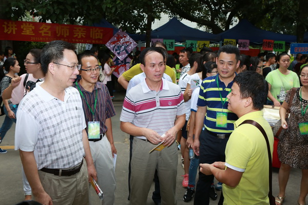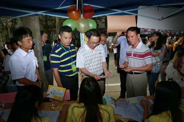 各二级学院不仅全面发动高年级同学积极参与迎新,结合学院专业特色精心设计本学院报到大本营,而且组织本学院的教授博士亲临迎新第一线。化学院夏加亮博士在迎新现场向梁英书记汇报工作时表示,自己已经精心做了新生教育安排,将在第一时间告诉新生学校为他们准备了什么“菜”,他们应该怎么吃这顿“大餐”。来自台湾的教科院特殊教育系主任吴武典教授现场向新生及家长讲解特教专业的相关情况,解答他们的各种疑问。