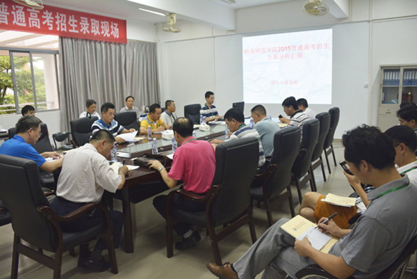 岭师新闻中心讯:“今年招生形势总体情况比往年好,文科、理科超出广东省最低录取分数线6分、11分,所有专业均在第一志愿投档完成。”7月21日,学校党委副书记刘海涛在主持我校2015年普通高考招生录取工作现场会上兴奋地说,这是我校更名为岭南师范学院的第二年,招生工作持续出现良好的发展势头。