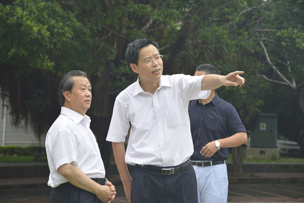 岭师新闻中心讯:“在校园的每一个景区,草地、绿树、石头构筑的空间都蕴含着丰富的文化内涵。”《光明日报》总编辑何东平认为,岭南师院的校园建设起点高,有内涵、有品位,把书院文化、传统文化和师范文化进行了很好的融合。7月18日上午,何东平率光明网总裁、总编辑杨谷和《光明日报》广东站吴春燕站长等一行四人来校参观指导,对我校的校园建设给予了高度评价。