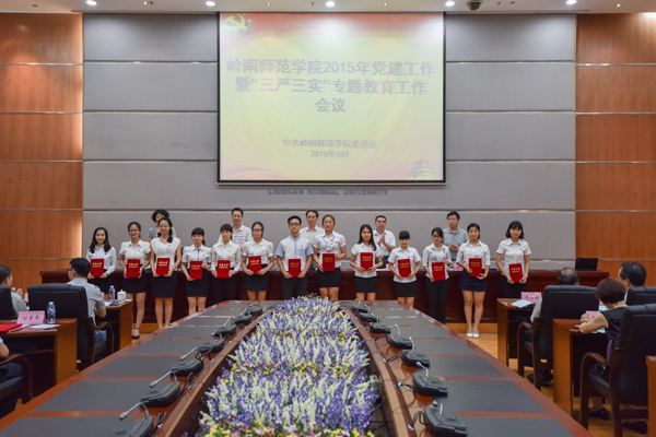 岭师新闻中心讯:5月29日下午,我校2015党建工作暨“三严三实”专题教育工作会议在国际会议厅召开。会议主要对今年学校党建工作和开展“三严三实”专题教育工作进行部署,校党委梁英书记作《狠抓党的建设 践行“三严三实”》的专题教育党课。校党委刘海涛副书记、黄钢副院长、兰艳泽总会计师出席会议,党群和职能部门负责人,二级党委正、副书记,及特聘组织员、党建辅导员、有关获奖人员参加了会议。会议由学校党委彭权群副书记主持。