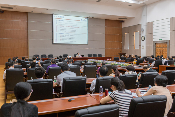 近日,华南师范大学党委书记胡社军教授应邀来校指导讲学,在国际会议厅作了题为《华南师大改革发展与教师培养培训》的专题报告。校领导罗海鸥、刘周堂、黄钢、李江凌、邵乐喜、兰艳泽,校内各二级单位主要负责人和规划、人事、教务、科研等职能部门科级以上干部参加了报告会。报告会由罗海鸥院长主持。