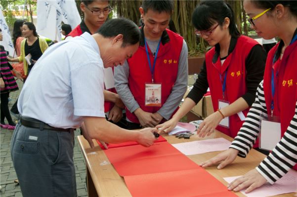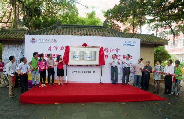 为了积极响应党的十八大提出的“立德树人”的教育理念,今年学生处在资助育人工作方面又推新举措,以受资助大学生为主体,筹建成立“感恩·圆梦”义工服务队和“感恩·圆梦”基金会,并于3月21日上午,在古榕广场举行了一场简朴而隆重的成立大会。在学校党委梁英书记、学校学生资助工作委员会全体成员、校外相关单位和公益机构负责人的大力支持下,在学生处全体成员、全体辅导员、自强社和校院两级义工服务队管理干部、800多名受助学生代表的共同见证下,进行了揭牌和授旗仪式。大会由学生处易如副处长主持。