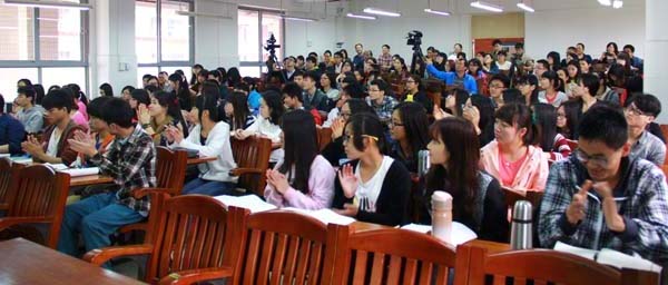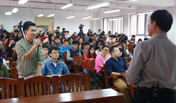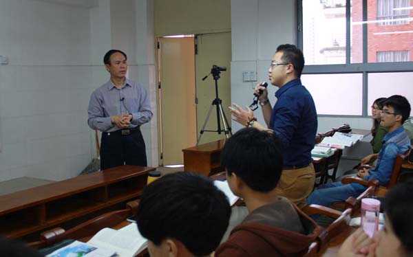 罗院长最后总结指出,“办大学,最重要的是办个氛围,尤其在人心浮躁的今天,一个能净化心灵的优美校园环境,对转变学生气质、陶冶学生情操、提升学生精神境界,特别是培育学生核心价值观十分重要。要使校园形成浓郁的文化氛围,让学生浸润其中,潜移默化地构建核心价值观,勤修力学,立己(德)树人,成为德智体全面发展的“负责任、强能力、善创新”的社会主义事业的建设者和接班人,为实现中华民族伟大复兴的梦想作出自己的努力和贡献!”课堂上,罗院长引经据典、旁征博引,精彩的讲课赢得了学生们阵阵掌声。