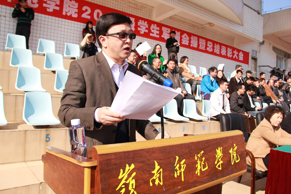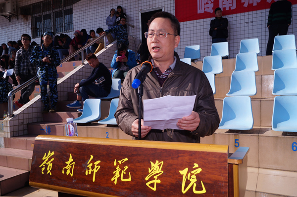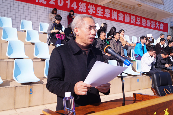 李江凌副院长宣读《岭南师范学院关于表彰2014级学生军训先进单位的决定》