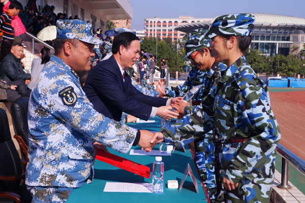 分列式结束后,我校李江凌副院长宣读了《岭南师范学院关于表彰2014级学生军训先进单位的决定》。其中音乐学院、商学院分别荣获一等奖,人文学院、法政学院、数学与计算科学学院、美术学院分别荣获二等奖,外国语学院、教育科学学院、物理科学与技术学院、化学化工学院、信息科学与技术学院、生命科学与技术学院及体育科学学院分别屈居三等奖。校领导和部队首长为获奖单位颁奖,并表示祝贺。另外,今年军训还增设了内务卫生奖,其中商学院荣获一等奖,数学与计算科学学院、美术学院荣获二等奖,法政学院、物理科学与技术学院、生命科学与技术学院荣获三等奖。