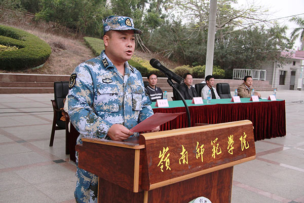 岭师新闻中心讯:1月4日上午8点,2014级学生军训动员大会在雷阳广场举行,学校党委梁英书记、彭权群副书记,海军陆战学院学兵大队鲁春锋主任,学校校党委武装部林森部长、李海文副部长、郑赞芳副部长,二级学院副书记、带队老师及2014级全体参训学生参加了动员大会。会议由李海文副部长主持。