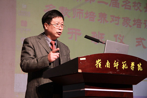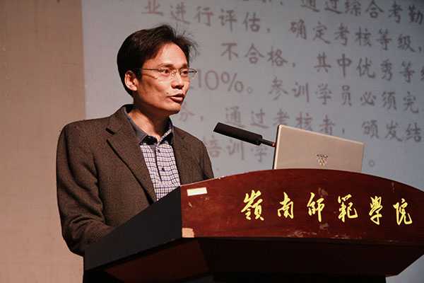 开班仪式上,学校黄钢副院长致辞指出,我校教师教育具有的师资队伍结构合理、覆盖面广、教学成果显著、专业建设强等优势,具有承办湛江市高端教学培训任务的实力,希望参加培训的教师与学员积极互动、相互关心、共同探讨、共同进步。湛江教育局苏盛副局长在致辞中对培训班学员提出三点要求:一要提高认识,明确意义;二要端正态度,遵守要求;三要积极主动,虚心学习。教育科学学院范兆雄院长围绕培训对象、培训理念、培训目标、培训内容、培训环节与模式、培训进程与时间安排、学员学习考核与评价以及组织与管理等八个方面,给学员详细解读了培训实施方案。