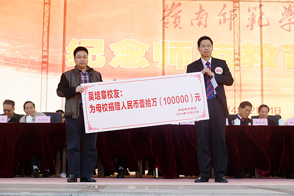 岭师新闻中心讯:在12月21日纪念师范教育110周年大会上,由梁英书记主持,罗海鸥院长接受捐赠,我校接受了海峡两岸兄弟院校赠送的纪念品,更出彩的是接受了广州校友分会、东莞校友分会,以及14位校友的捐赠,这是我校接受捐赠最多的一次盛会。