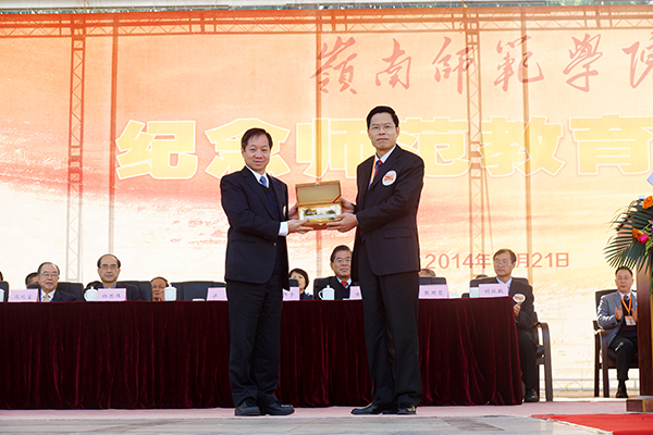 兄弟院校代表台湾师范大学、台中教育大学、屏东大学分别向学校赠送纪念品。