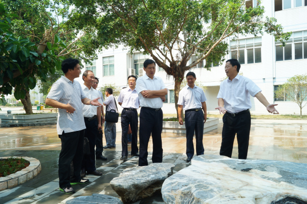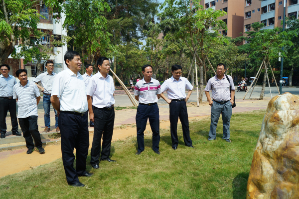在学校领导的引导和讲解下,郑副厅长重点察看陶壁公共艺术《问渠》、博学园、春晖园、慎思园、立德园和树人广场等近期校园景观文化的建设。他每到一处都详细察看和听取校领导的介绍,不停地点头称赞学校环境的巨变,对学校充分利用校史校情,挖掘和弘扬优秀传统文化和书院精神,因地制宜,就地取材,塑造校园景观,达到一步一景,将大学精神与校园环境建设有机结合,营造浓郁的育人文化氛围大为赞赏,认为这样就可以让学生在优美的文化校园里读书生活,陶冶情操,提升品味和自信,形成文化自觉。他深情地说,通过短暂的考察,深深体会到学校领导在校园环境的建设上的用心尽力,通过整治乱、脏、差的角落、危楼改造和道路端口的景观设置,营造了富有特色的优美校园。用最少的钱,建成了这样优美精致,而又充分体现大学精神文化和人文关怀的校园景观,真不容易。他还建议学校要把各景观的设计理念和蕴含的精神文化内涵,通过一定的形式,让广大干部和师生充分了解,形成共识,口口相传,让一届又一届的学生精神品质和审美素质得到陶养,促进社会主义核心价值观的养成。