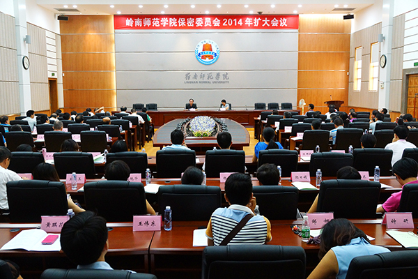 岭师新闻中心讯 9月25日下午,我校保密委员会2014年扩大会议在国际会议厅召开,湛江市国家保密局王治华局长,学校党委梁英书记、刘海涛副书记,学校保密委员会成员,各职能部门负责人,各二级党委(总支)书记、涉密人员,各二级单位综合科科长(办公室负责人)等共110人参加了会议。会议主要内容包括:保密工作专题讲座、保密专题党课、保密工作部署、保密工作责任书签订等。