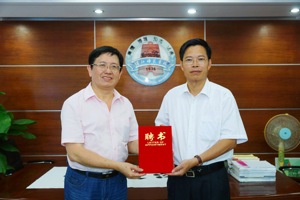 罗海鸥院长向蓝瑞明校友颁发客座教授聘书