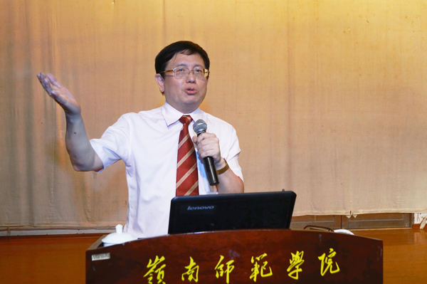 岭师新闻中心讯:9月9日,香港蓝宝城有限公司董事长、73级校友蓝瑞明教授应邀返校出席2014级新生开学典礼,做客“校友大讲坛”,作《自立自强,精彩人生》专题报告,勉励广大新同学要珍惜“岭南时间”,自立自强,奋发进取,努力开创精彩人生。