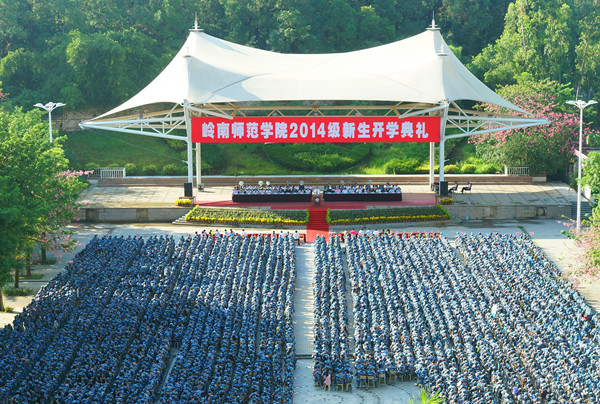 岭师新闻中心讯:金秋九月,丹桂飘香。9日上午,我校2014级新生穿着海蓝色的军装沐浴着灿烂的晨光,齐聚雷阳广场举行开学典礼。学校全体校领导,相关职能部门主要负责人、各二级学院领导教师代表、校友代表以及辅导员出席开学典礼,热情迎接学校更名后的第一批新生。