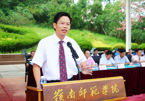罗海鸥院长致辞表示,学校举行新生开学典礼,标志着岭南师范学院首批6000名新同学入学就读的开始,新同学们将在优美的校园开启自己的“岭南时间”,它将以其独特的方式,塑造着每一天、每一周、每一年,以及同学们整个四年时光的质量和特色,“岭南时间”将使同学们一生受益,终生难忘。罗院长指出,开启“岭南时间”主要有“五个隧道”:第一,优美的校园为同学们开启岭南时间提供了良好的环境。学校坐落在拥有蓝天碧水的滨海城市,毗邻瑞云湖、寸金公园,校内景观优美雅致,十分适宜工作学习生活。第二,深厚高雅的校园文化为同学们进入岭南时间提供了启示。校园处处是景点,处处是文化。树木、石刻、名家名言,各样小品景观,无不涵蕴深刻的精神内涵,发人深省,令人回味,教人奋发。第三,优秀的教职工队伍为同学们进入岭南时间提供了坚强保证。学校70%的老师住在校内,随时接受学生咨询,为同学们提供指导。第四,优秀的校友和师兄师姐,为同学们进入岭南时间提供了路标。学校杰出校友和优秀学长为同学们的成长作出榜样,提供示范,他们的成长事迹将激励和指引同学们的进步。第五,自身的努力是同学们进入岭南时间的根本所在。同学们要秉承“博学、审问、慎思、明辨、笃行”的精神,充分利用大学的一切资源学习,砥砺德行,增长学识,立己立人。罗院长最后深情地说:“亲爱的新同学,你们大学四年的岭南时间开启了。希望你们珍惜它,把握它,好好地享用它!”