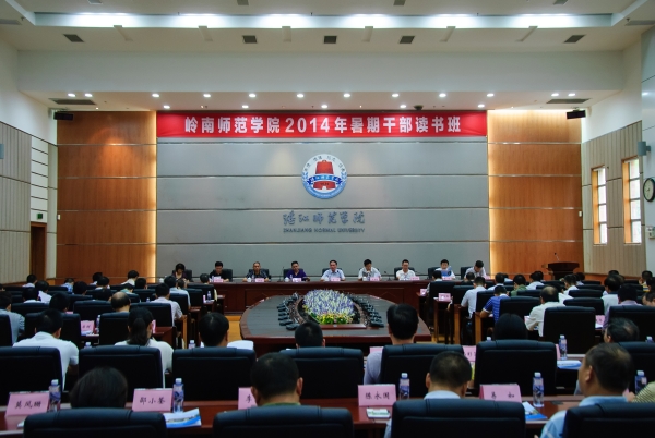 岭师新闻中心讯:8月29日,我校2014年暑期干部读书班在国际会议厅举行。读书班主题为:深入学习习近平总书记系列重要讲话精神,结合我校“狠抓改革,促进工作”的总要求,研究推进“创新强校工程”,认真谋划学校发展的战略任务、重大部署和建设思路,统一思想,振奋精神,群策群力,深化改革,真抓实干,努力开创我校办学事业新局面。读书班围绕学习贯彻习近平总书记系列重要讲话精神和上级有关会议精神,总结部署学校深化改革、推进创新强校工程等工作。全体校领导和校内副处级以上干部(含相当),基础教育学院、附中党政正职等150余人参加了本次读书班。