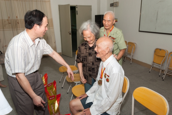 座谈会上,梁英书记向老党员们致以节日的问候并为黄勇同志颁发50年党龄纪念章。随后,梁英书记发表讲话,他就最近习近平总书记提出的关于党员同志要做到“五个坚持”的要求向老同志作了传达,即坚持绝对忠诚的政治品格,坚持高度自觉的大局意识,坚持积极负责的工作作风,坚持无怨无悔的奉献精神,坚持廉洁自律的道德操守。并认为,我们在座的老同志实际上就是“五个坚持”的实践者,是我们广大党员学习的模范,全校党员干部要以在座的老党员为榜样,扎实工作,在学校的建设和发展奉献自己的青春和力量。宣传部门要深入挖掘他们的光辉事迹,积极地通过不同的途径延续他们身上特有的思想精髓,学习他们坚持不懈地奉献教育事业的优秀精神品质。梁英书记代表学校向自青年时期开始就扎根我校教育事业发展和党的建设并作出贡献的老党员们表示崇高的敬意和衷心的感谢。同时,梁书记还向老同志通报学校即将更名为岭南师范学院这一喜讯,一同展望学校发展的美好前景。