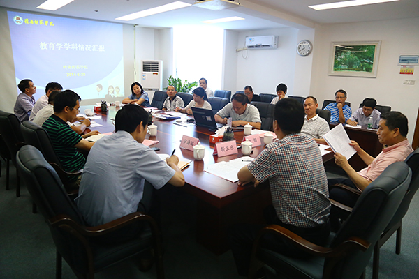 我校教务处程可拉处长从学科队伍、研究方向与特色、研究机构与团队、研究成果和学术交流等方面介绍了教育学科近五年来所取得的进展。教育研究院左兵副院长介绍了广东省普通高校人文社科重点研究基地“粤西教师教育研究中心”的建设思路和相关情况。