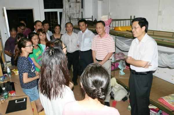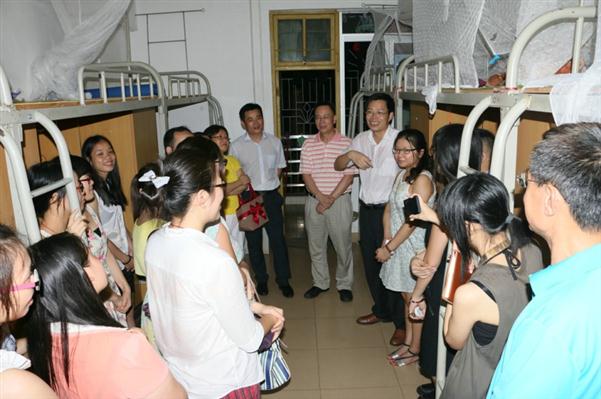 6月19日至20日,2014届本科毕业生将陆陆续续离开学校,奔往前程。毕业生离校前夕,昨晚10时许,学校罗海鸥院长、彭权群副书记在院长办邓逢光主任、学生处李粤处长等人的陪同下走访毕业生宿舍,为毕业生送别。