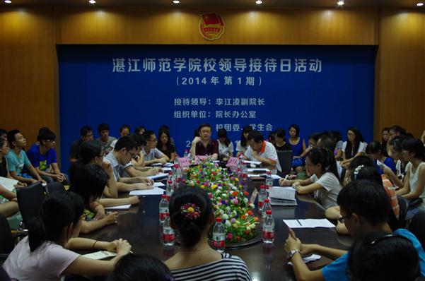 6月17日晚,由院长办公室、校团委和校学生会联合组织的今年第一期“校领导接待日”活动,在鸿园餐厅四楼综合会议室举行。李江凌副院长作为本期接待日轮值校领导,围绕学校后勤服务、学生公寓管理等问题,与100多名学生代表面对面,进行了热烈活泼的现场交流与答疑。后勤产业处程子建处长、校团委郭和才书记、学生处陈永国副处长、校团委李亚九副书记等相关部门负责人参与了接待活动。活动由院长办欧海清副主任主持。