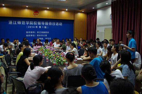 接待过程中,同学们就学生公寓限电措施、校园一卡通使用、食堂管理、校车管理、图书馆建设、新校名新发展等问题提出意见和建议,李副院长与各职能部门负责人耐心倾听,细致解答。现场气氛热烈,互动积极,每每谈到精彩之处,掌声笑语充盈全场,激情洋溢。